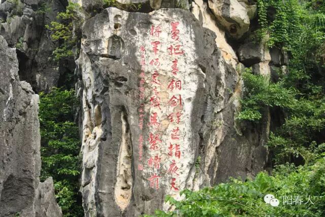 石壁上有诗人韦丘写的一首诗“万把青铜剑,锋芒指夜天,将军何处去,战马系槽前”